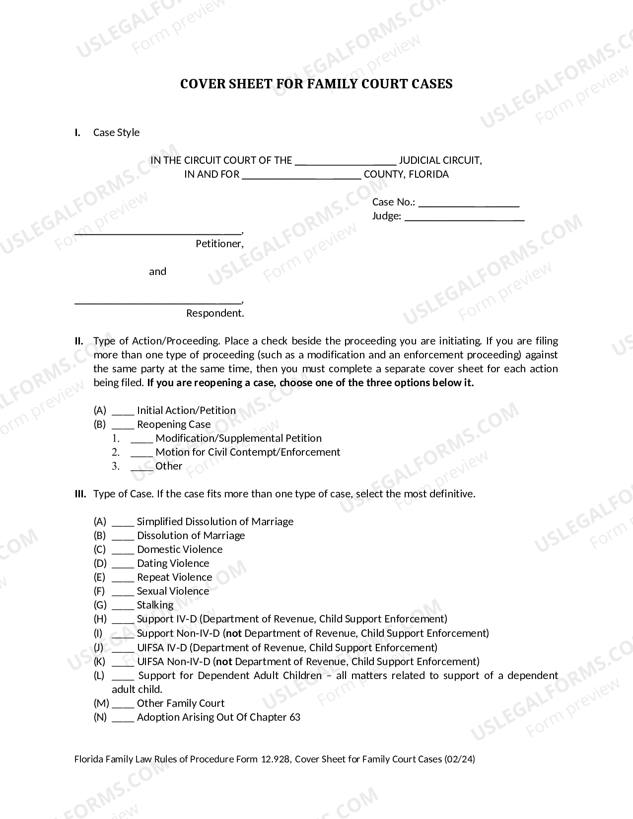 Florida Cover Sheet For Family Court Cover Sheet For Family Court Cases Us Legal Forms
