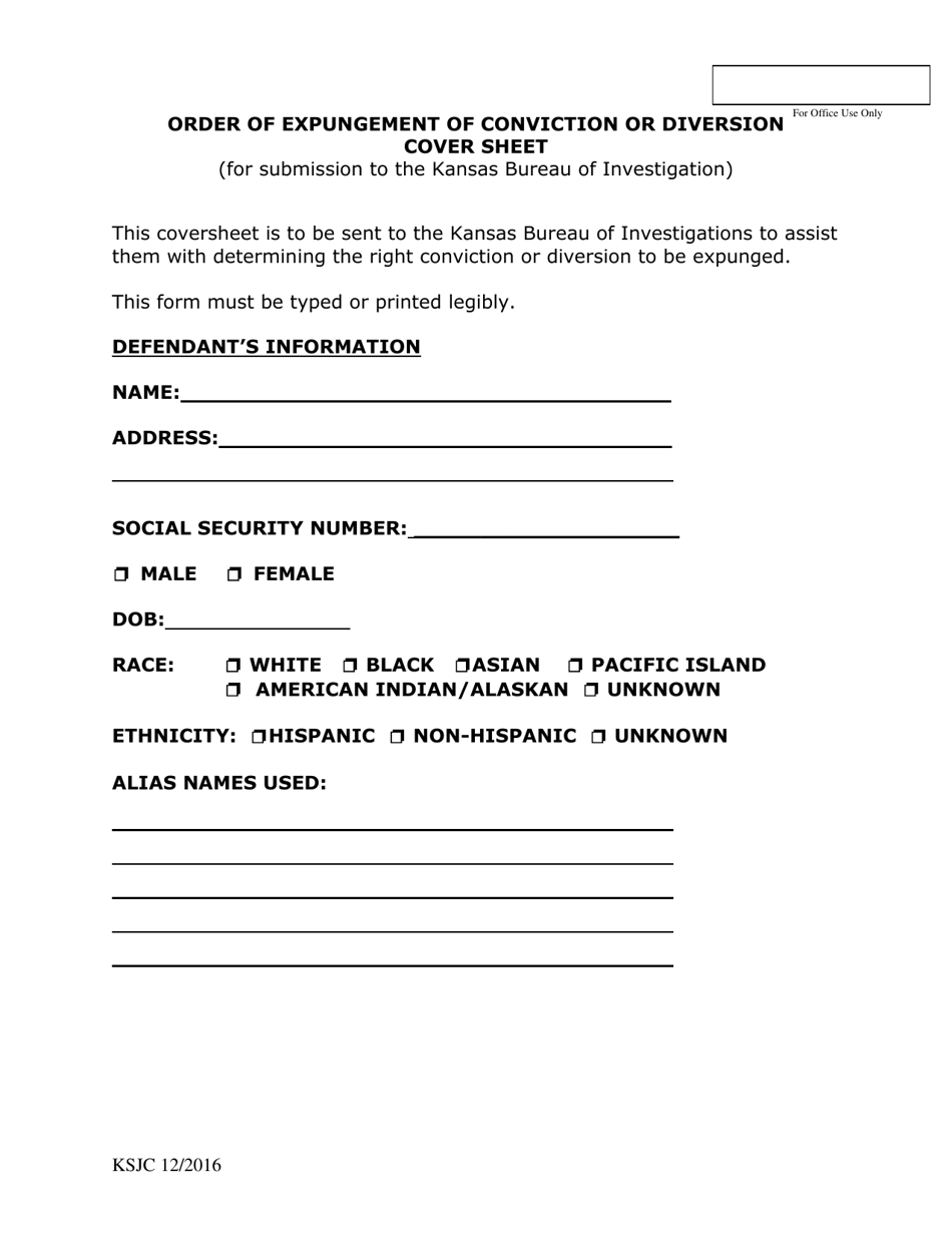Kansas Order Of Expungement Of Conviction Or Diversion Cover Sheet Download Printable Pdf Templateroller