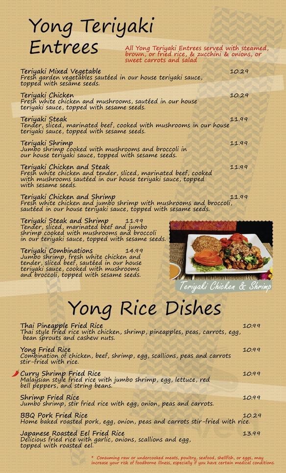 Yong Asian House Menu In Johnson City Tennessee Usa